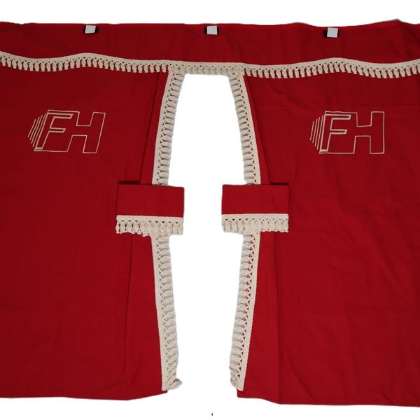 Cortina lateral de tela para camión con flecos y bordada. Disponible en azul, beige, negro y rojo. Compatible con DAF, MAN, Iveco, Scania, Mercedes y Volvo. Personalización: seleccione en el menú desplegable el color, la marca y el modelo del camión para definir el bordado.